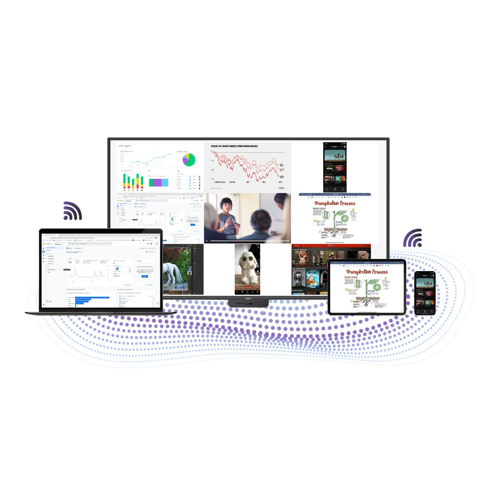 Uso compartido de pantalla inalámbrico sin interrupciones, integración de contenido, eficiencia energética y un robusto centro de colaboración.
